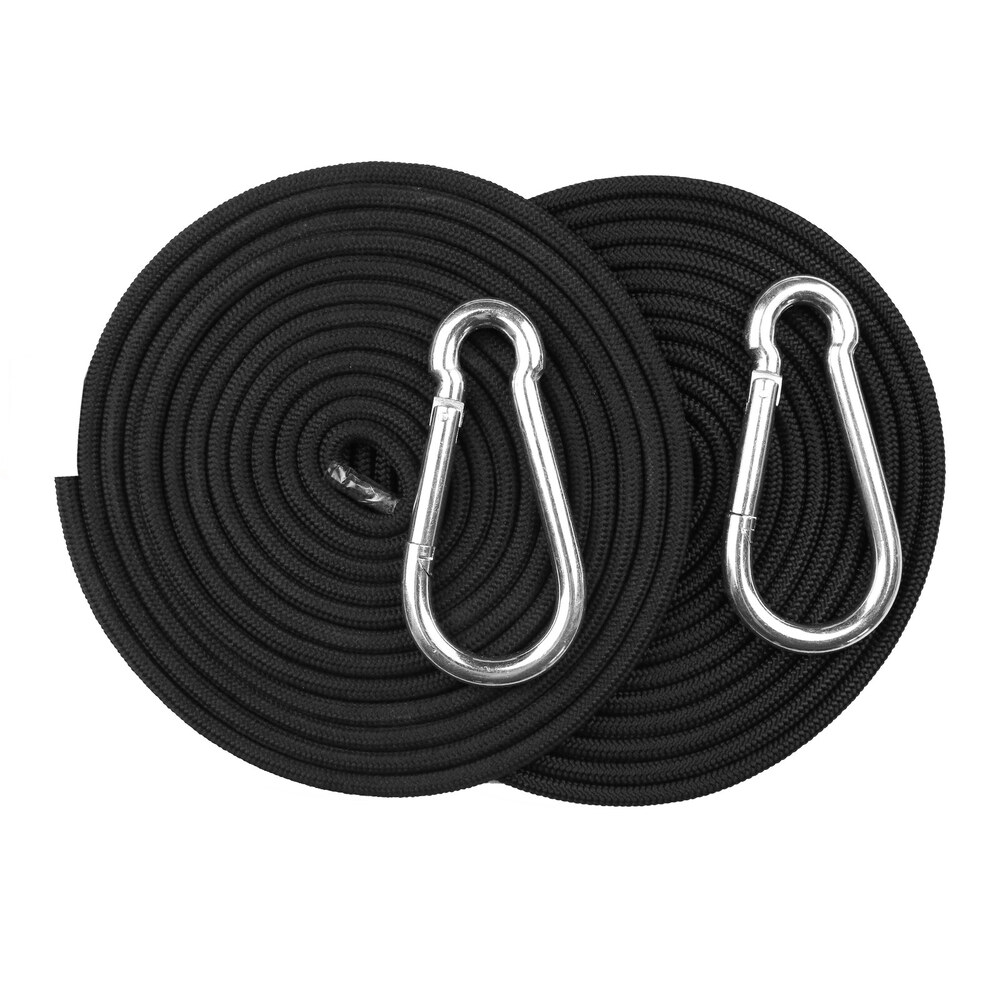 A kötelet duplán érdemes áthurkolni a fán/gerendán/bármin, és a karabinerrel egyszerűen ráakasztod a függőágyat, lásd a bolgban...